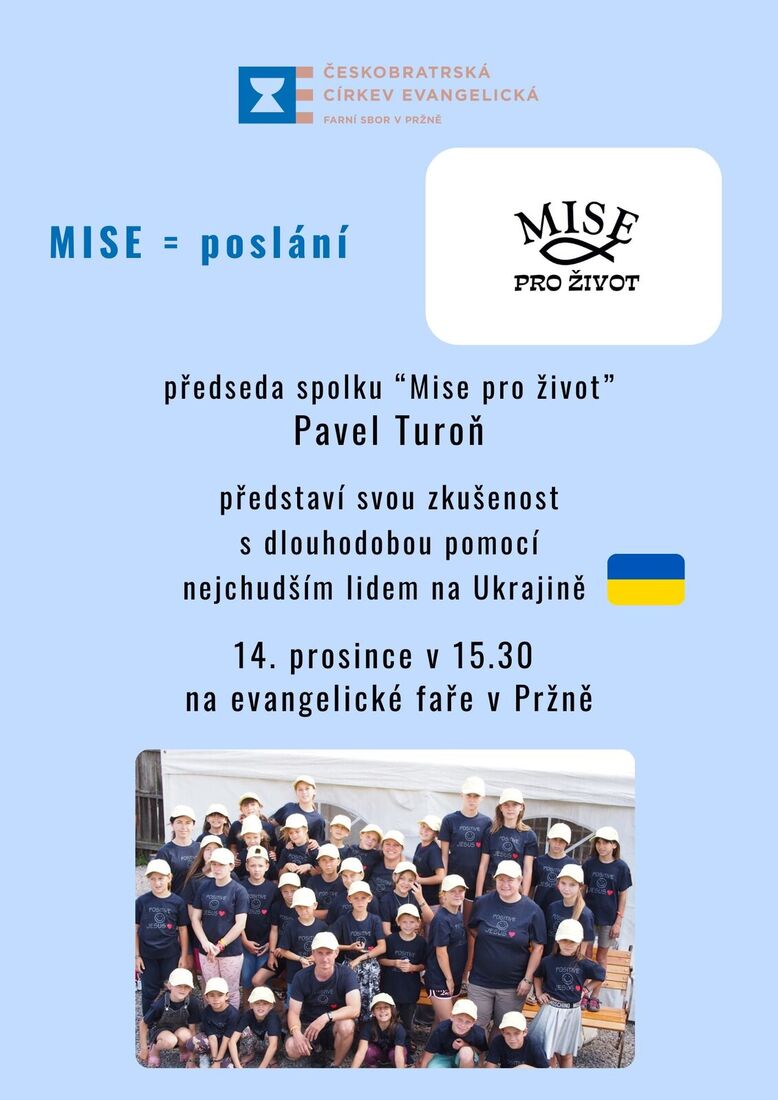 Zveme na další sborové odpoledne s hostem, kterým bude Pavel Turoň, předseda křesťanského spolku "Mise pro život". Akce se koná v ne-děli 14. prosince od 15.30 na faře v Pržně.